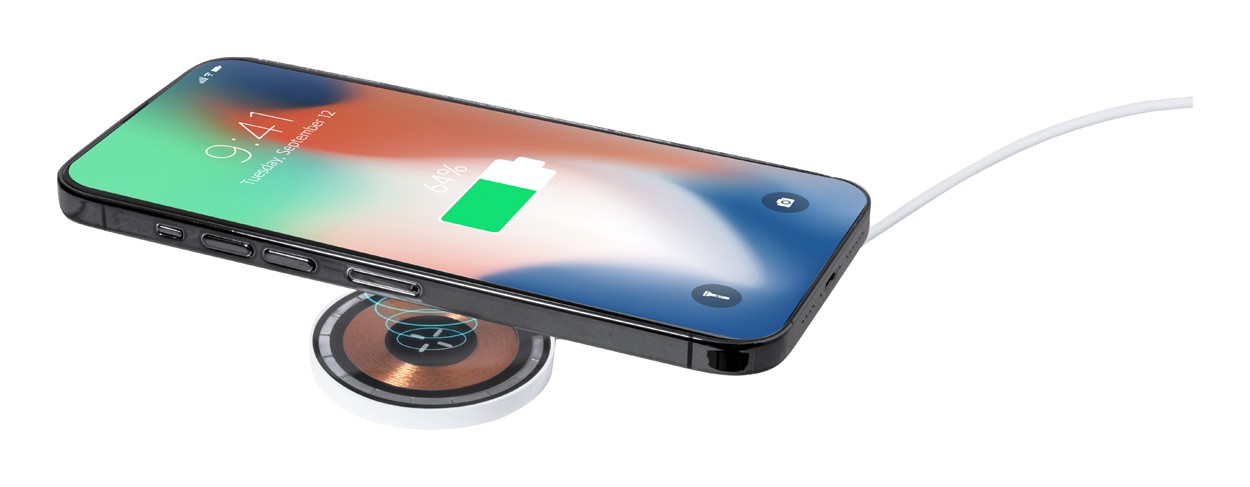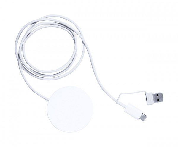 Încărcător rapid fără fir, magnetic, semi-transparent (15W) în carcasă din plastic ABS. Include inel metalic autoadeziv pentru a utiliza funcția magnetică pe orice dispozitiv de încărcare fără fir. Inclusiv cablu de încărcare USB cu conectori USB și USB-C.
