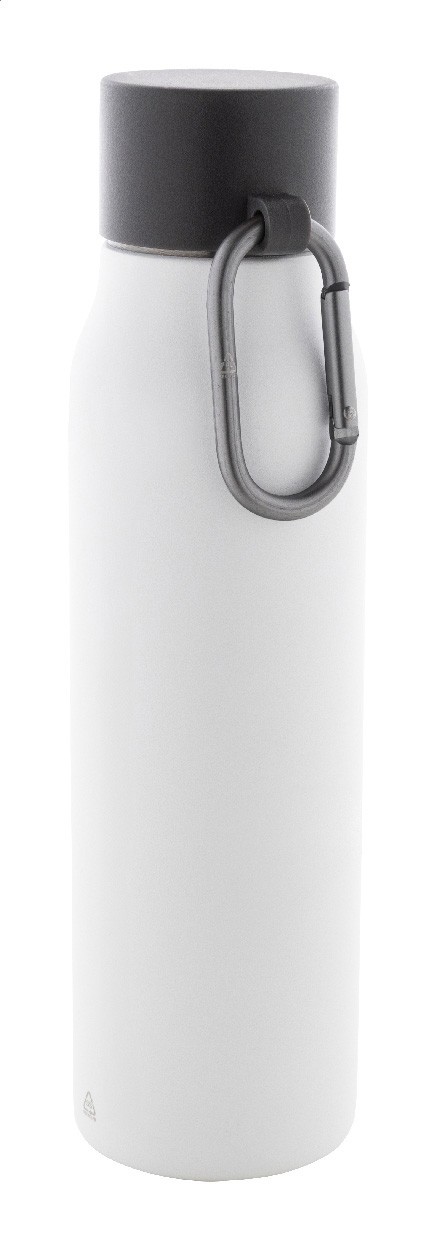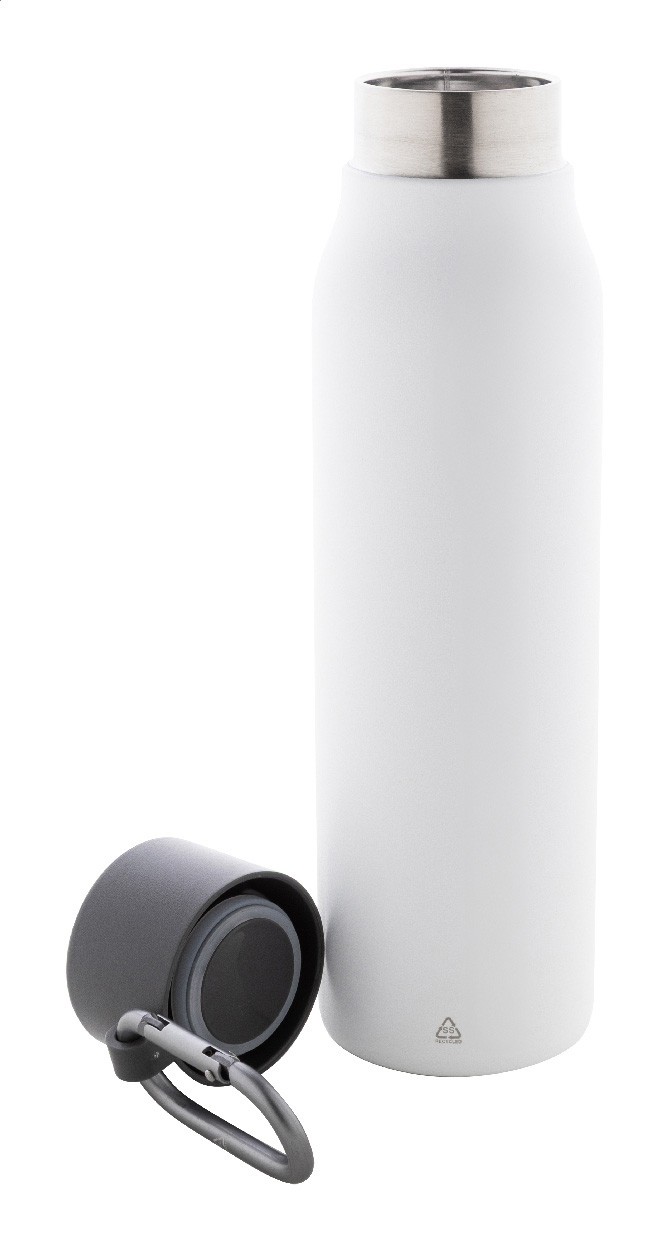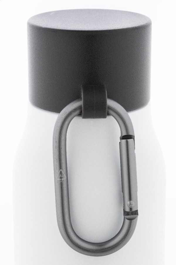 Sticlă termică, cu perete dublu, din oțel inoxidabil reciclat, izolată, cu capac din PP și carabină din aluminiu reciclat. 500 ml.