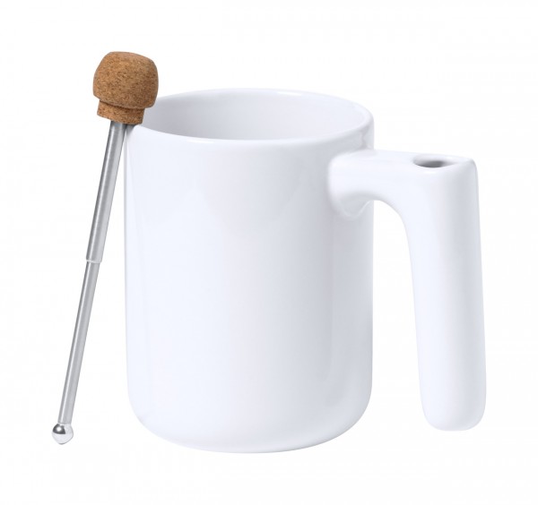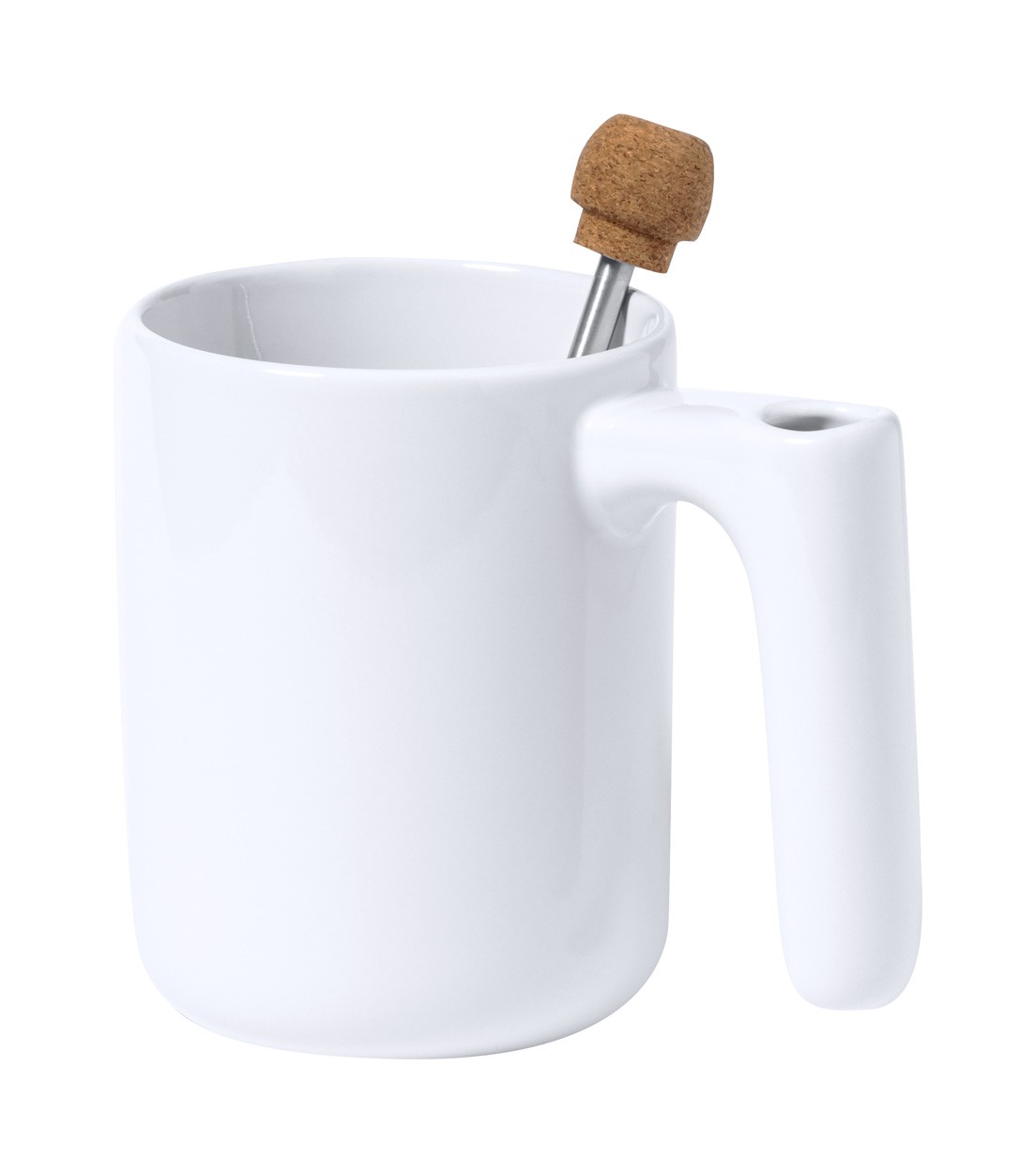 Cană din ceramică, cu mixer de băuturi, din oțel inoxidabil și plută naturală, 500 ml.