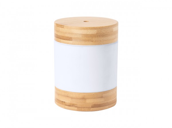 Umidificator de birou din bambus cu lumină LED. Inclusiv cablu de alimentare USB. Capacitate rezervor: 250 ml. În cutie de hârtie kraft.