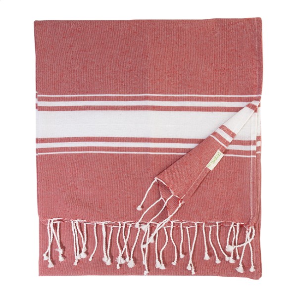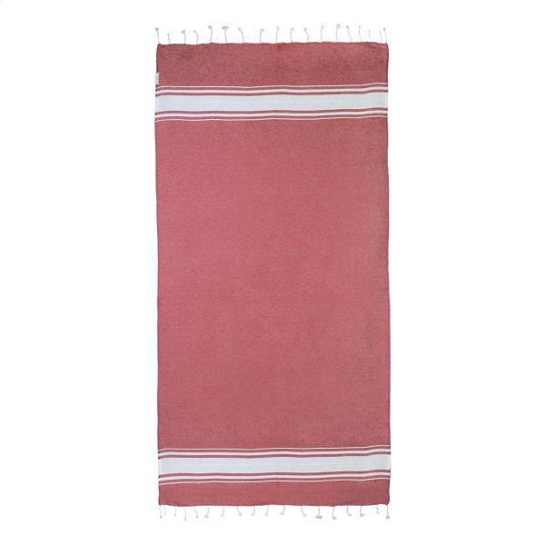 Prosop de plajă pareo, în două culori, din 70% bumbac reciclat și 30% poliester RPET, 180 g/m²
