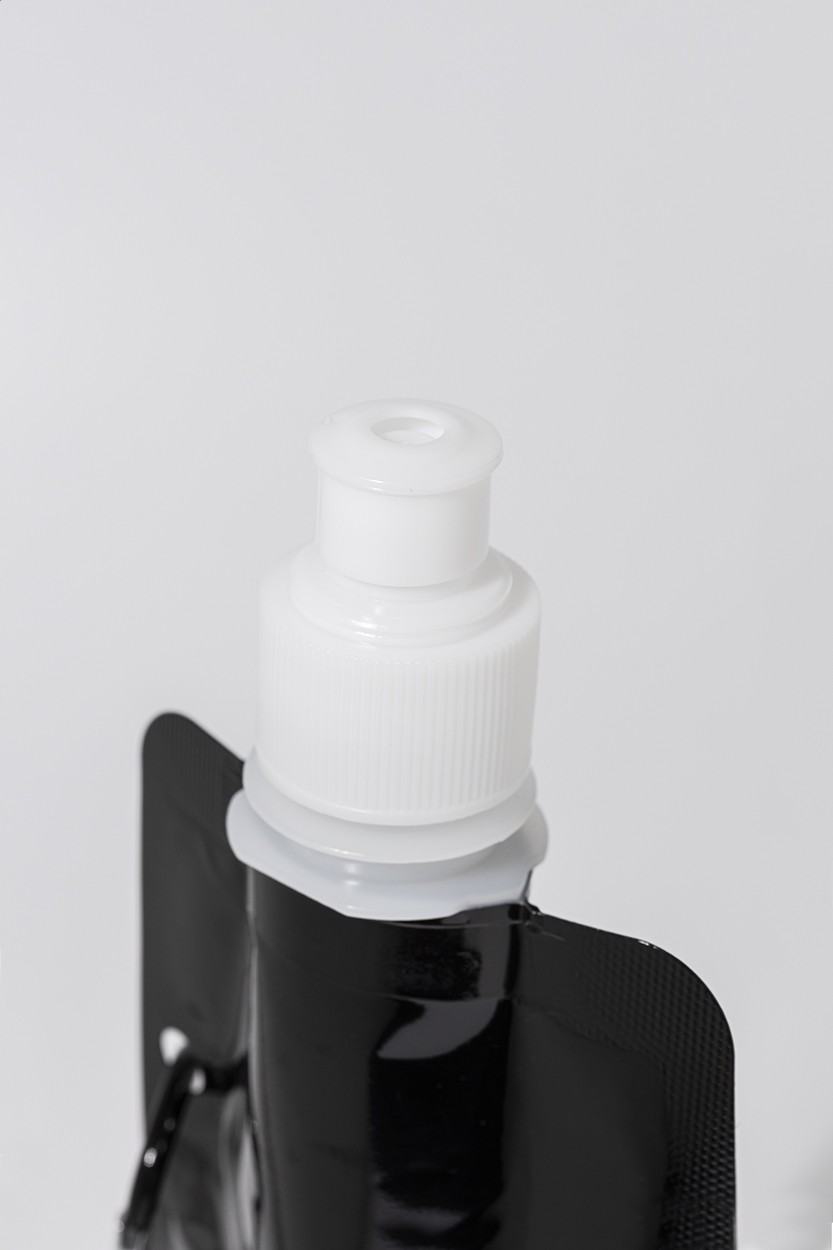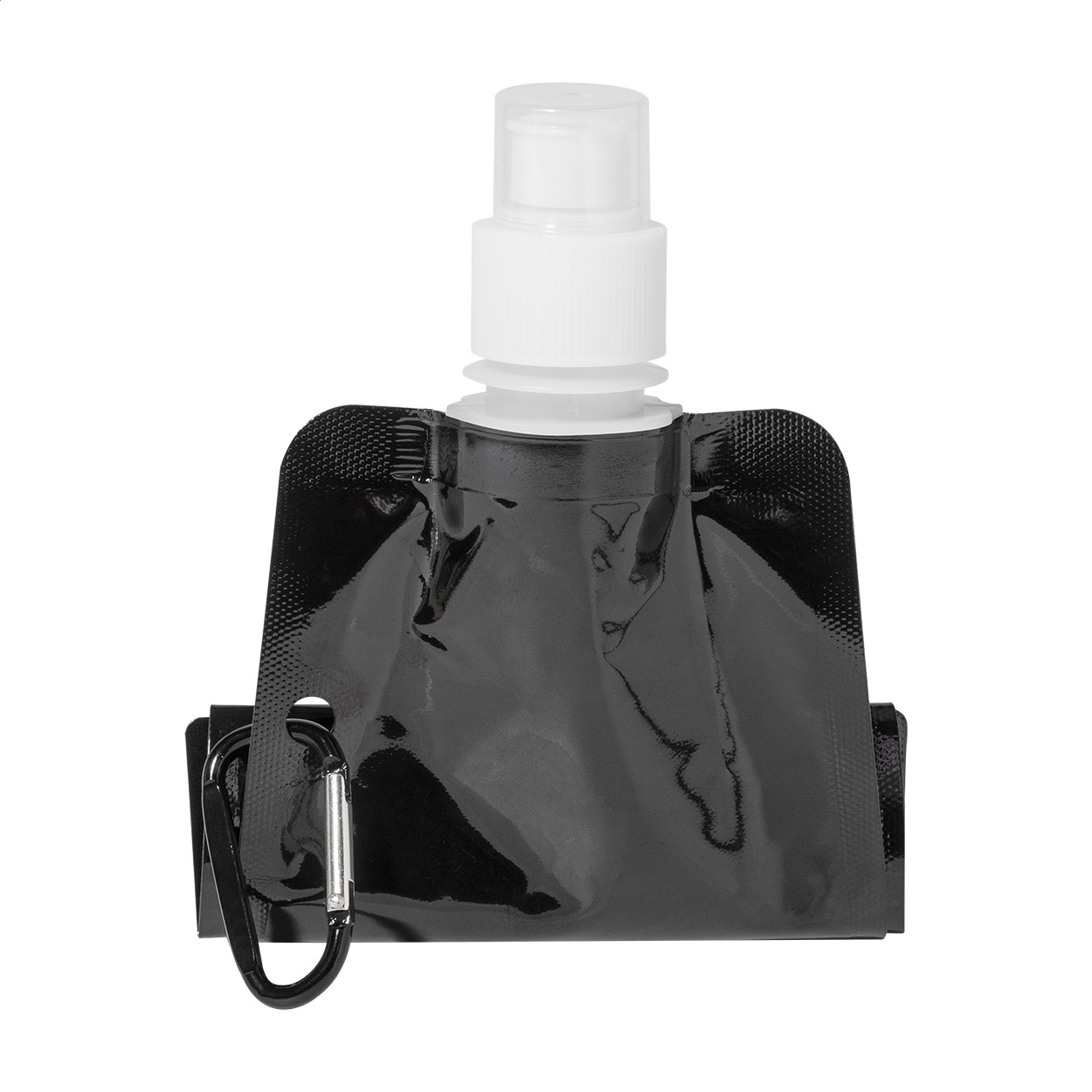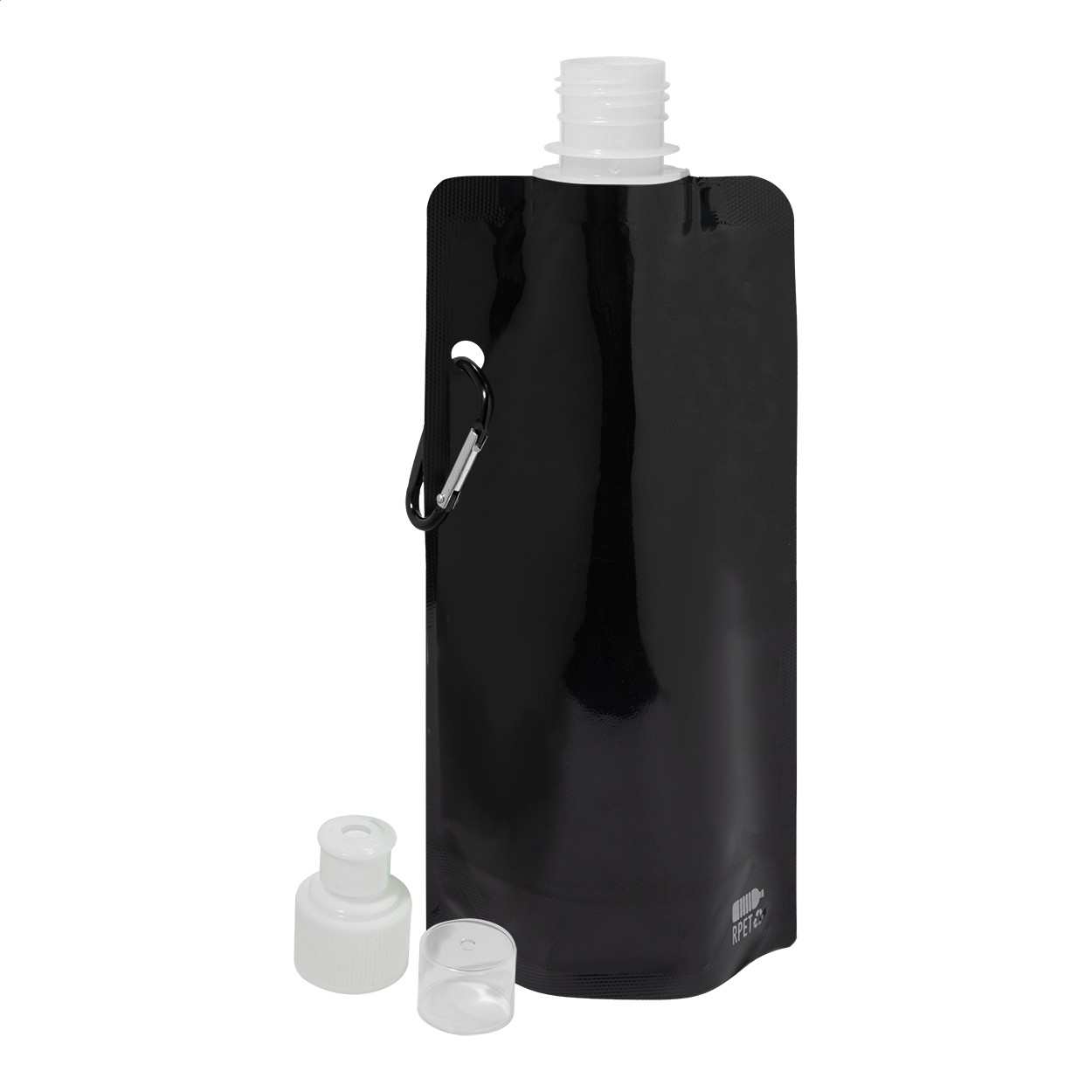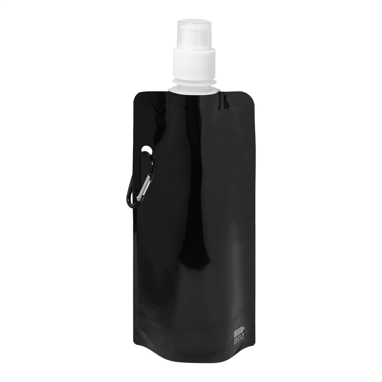 Sticlă sport pliabilă, din RPET cu capac pentru băut și carabină din aluminiu, 500 ml. Fără BPA. Nu este potrivită pentru băuturi carbogazoase.