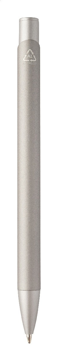 Pix cu bilă, din aluminiu reciclat, cu corp cauciucat și detalii de culoare asortată. Cu mină albastră.