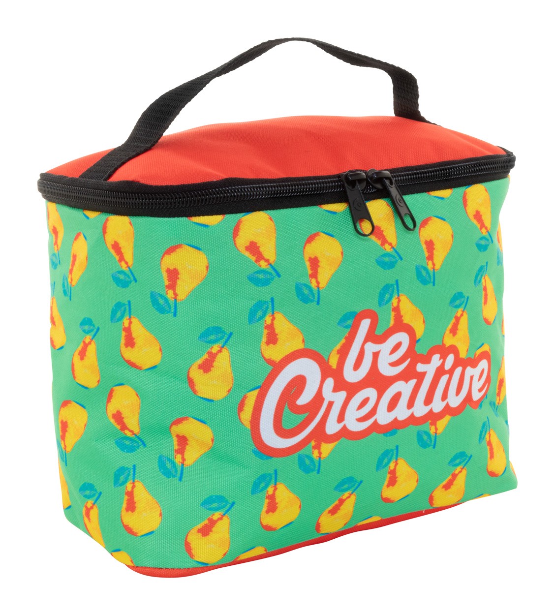 Geantă cosmetică RPET, realizată la comandă, cu fermoar, din poliester RPET 600D, cu mâner de transport. Cu grafică imprimată prin sublimare integrală. MOQ: 50 buc.