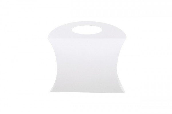 Cutie in formă de pernă, din carton, imprimată la comandă, cu mâner. Livrat ambalat plat. MOQ: 50 buc.