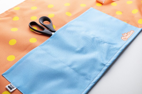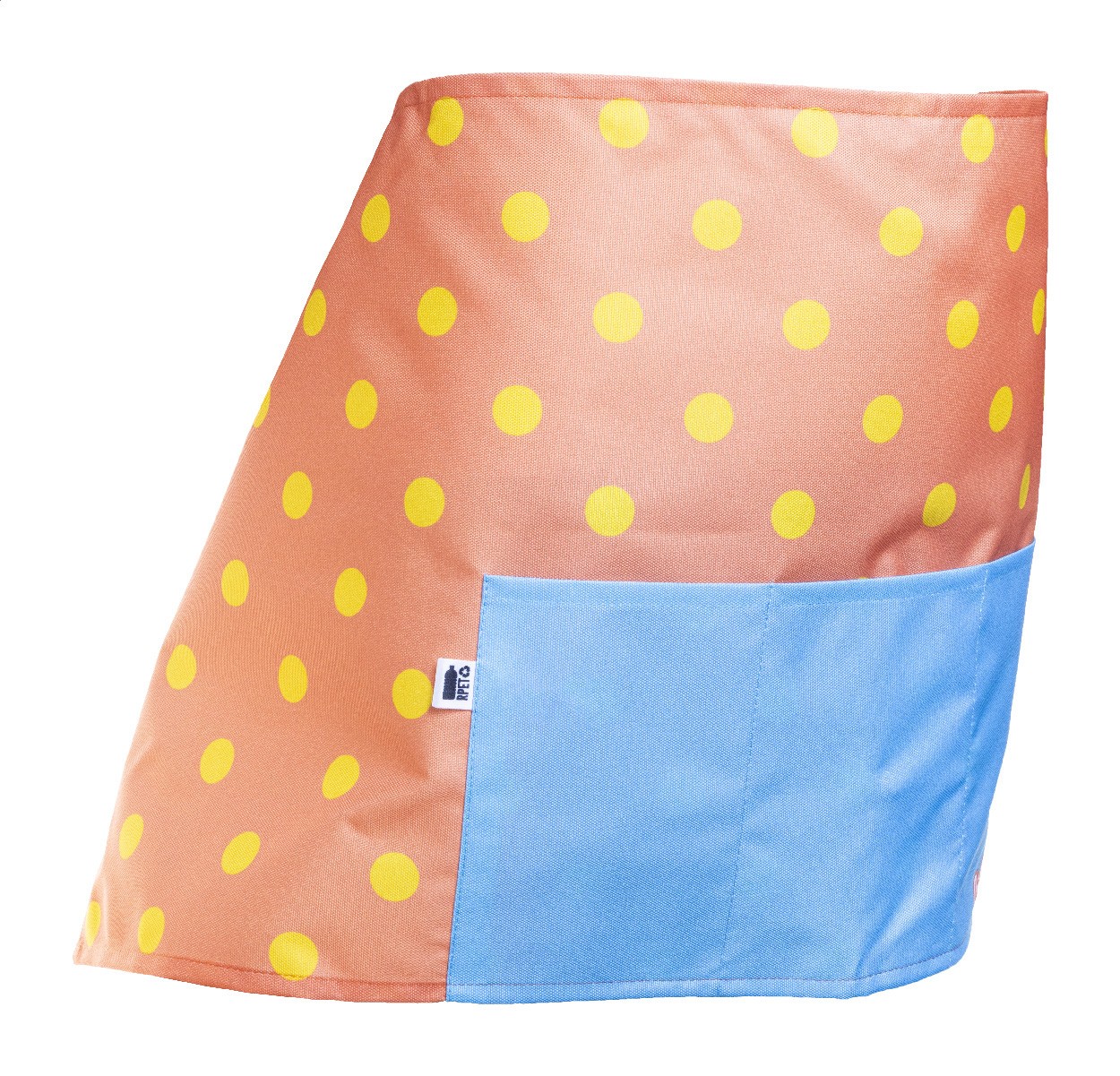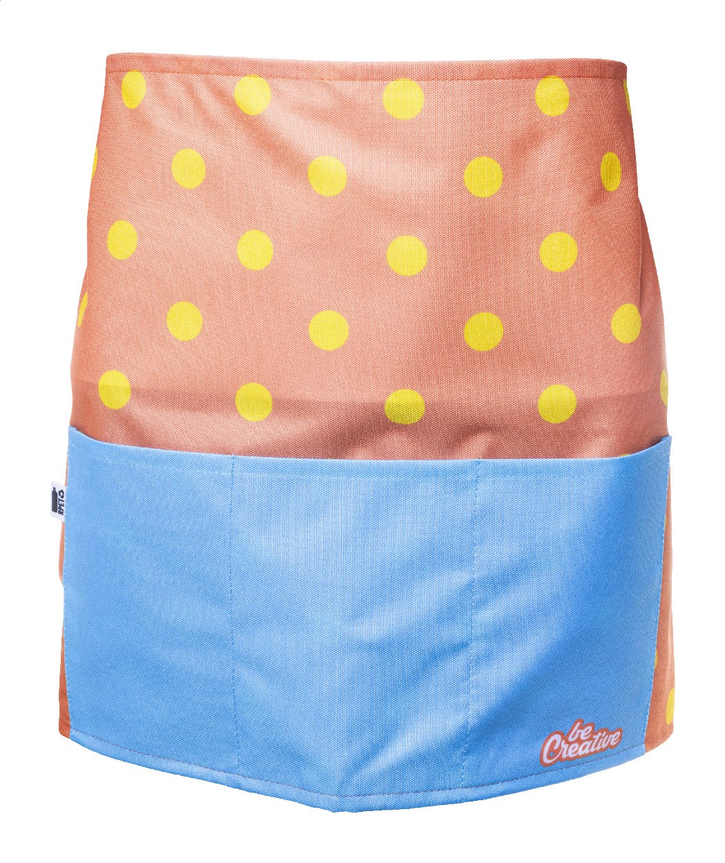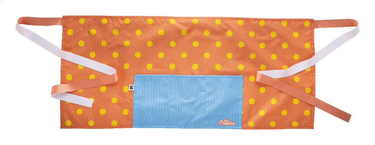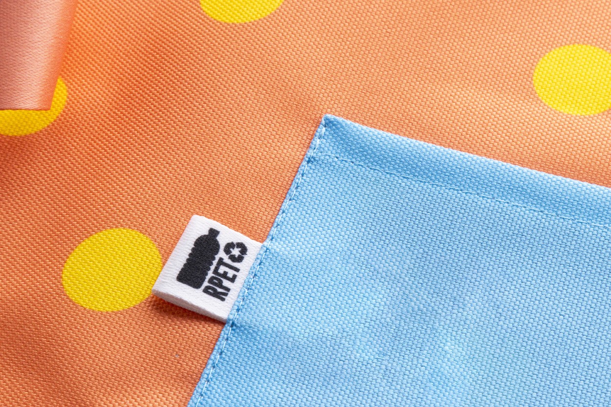Șorț bistro personalizat, din poliester 600D RPET, cu buzunar frontal triplu, grafică imprimată prin sublimare pe toată suprafața și etichetă distinctivă RPET. MOQ: 25 buc.