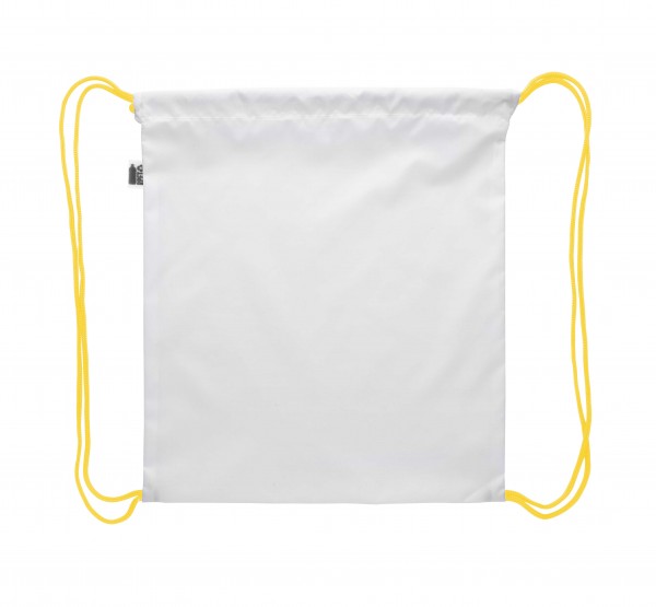 Rucsac cu cordon, personalizat, pentru copii, cu barete colorate, din poliester RPET 190T. Cu etichetă distinctă RPET si imprimare prin sublimare pe intreaga suprafata. MOQ: 25 buc.
