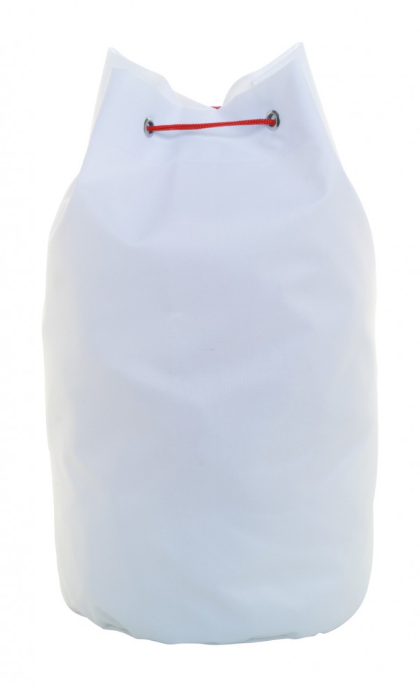 Geantă de marinar, cu șnur, realizată la comandă, din poliester 600D RPET, cu șinuri colorate. Cu grafică imprimată prin sublimare și etichetă distinctivă RPET. MOQ: 25 buc.