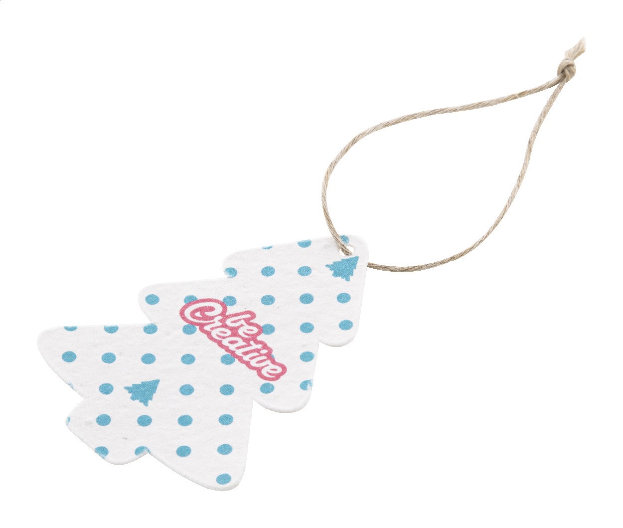 Ornament de Crăciun pentru brad, realizat la comandă, imprimat color, din hârtie cu semințe și sfoară de in. Prețul include imprimarea digitală pe o parte. Cu semințe asortate de flori sălbatice. MOQ: 100 buc.