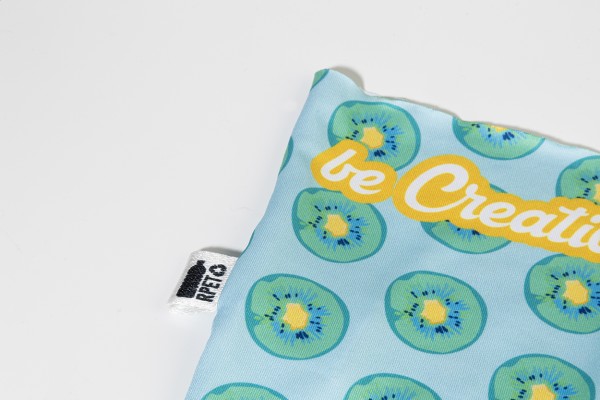 O pereche de manșete elastice, RPET, personalizate, cu imprimeu sublimat pe toată suprafața. 92% poliester RPET și 8% elastan (185 g/m²), cu etichetă RPET distinctivă. Cantitate minimă de comandă: 50 buc. Mărimi: M (8×12×48 cm), L (9,5×13,5×52 cm).