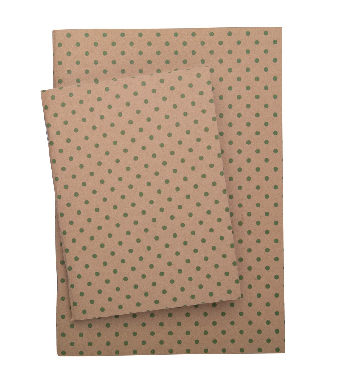 Caiet realizat la comandă, acoperit cu hârtie kraft reciclată, cu 32 de file din hârtie reciclată, dimensiune A5. Prețul include coperta exterior imprimată color. MOQ: 100 buc.
