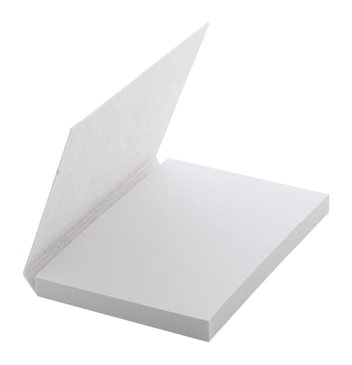Blocnotes cu note adezive, realizat la comandă, acoperit cu hârtie de semințe. Include 50 de note adezive (50×75 mm) din hârtie reciclată. Prețul include coperta exterior imprimată color. MOQ: 100 buc. Cu semințe de flori sălbatice.