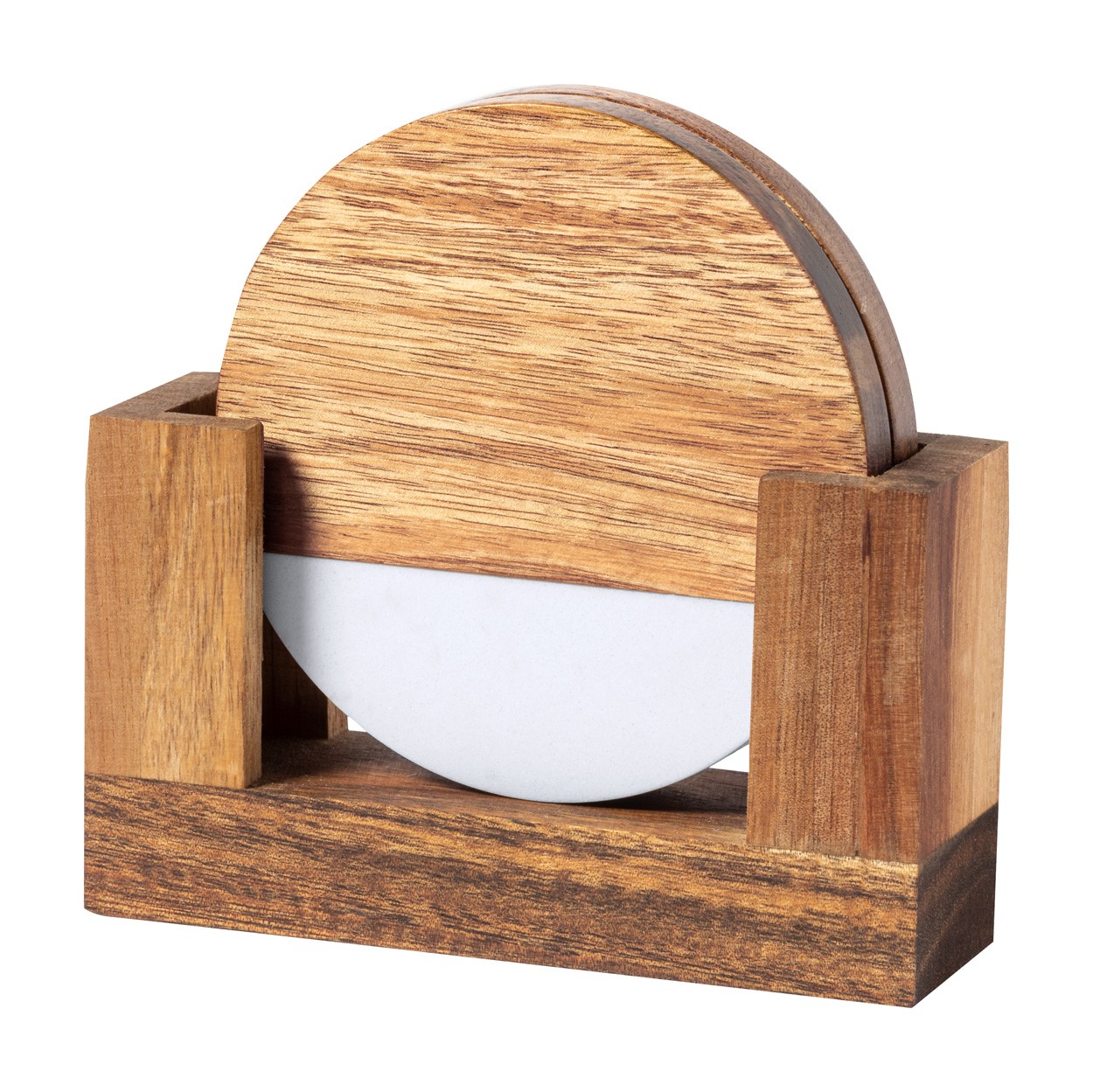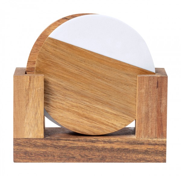 Set suport pahare, în două tonuri, 2 buc, din lemn, cu inserție de extract de marmură. În suport de birou din lemn.
