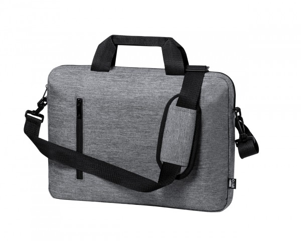Geantă pentru documente din material reciclat, cu compartiment principal cu fermoar, curea de umăr reglabilă, curea de cărucior, compartiment căptușit pentru laptop (15") și tabletă (10"). Poliester reciclat 600D.