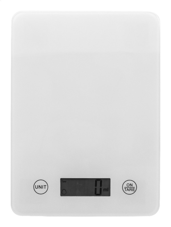 Cântar de bucătărie digital, cu platformă de cântărire din sticlă securizată și baterie reîncărcabilă USB încorporată (200 mAh). Capacitate: 5 kg, gradație 1 g, unități de măsură: g/oz. Cu indicator apă/lapte ml. Include cablu de încărcare USB.