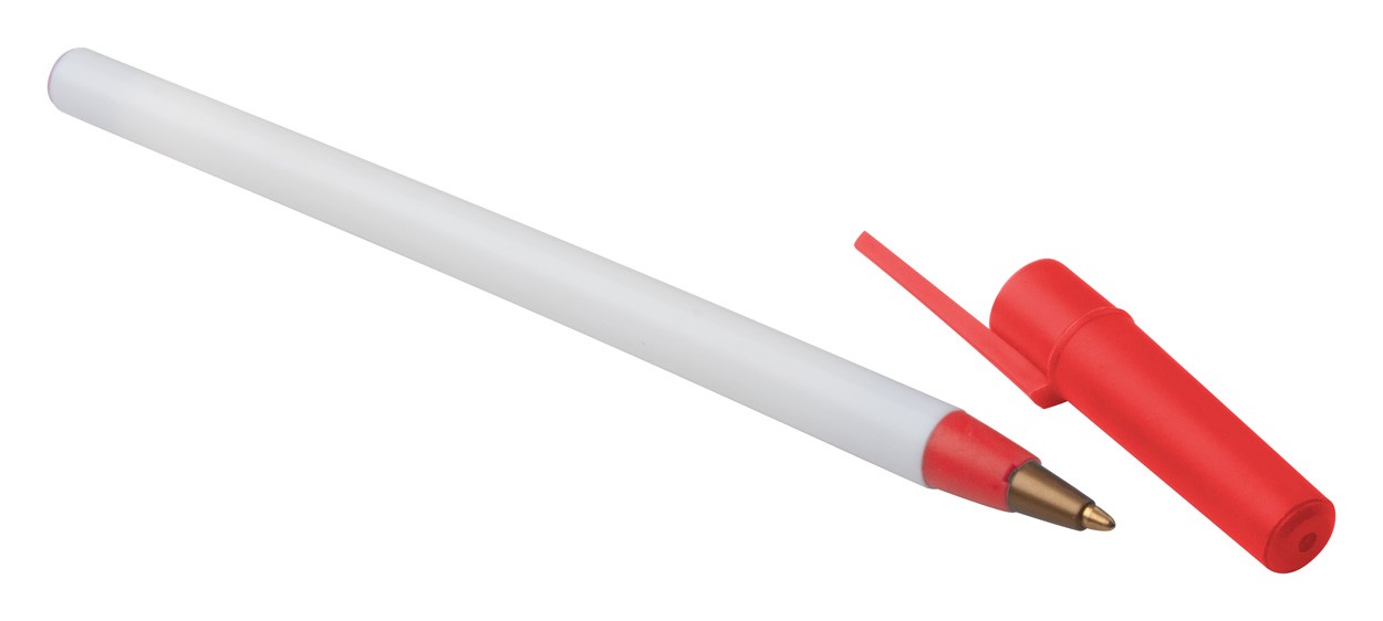 Pix din plastic cu corp alb şi capac colorat. Mină albastră.