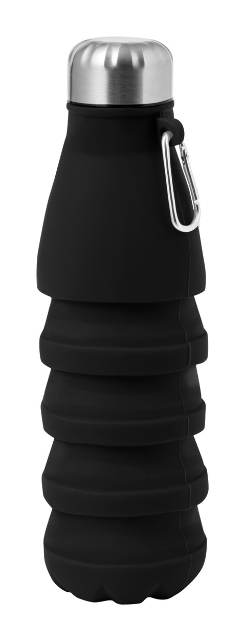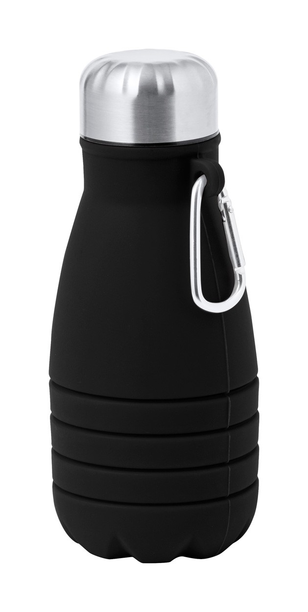 Sticlă sport, pliabilă, din silicon, cu capac și carabină din oțel inoxidabil. 550 ml.