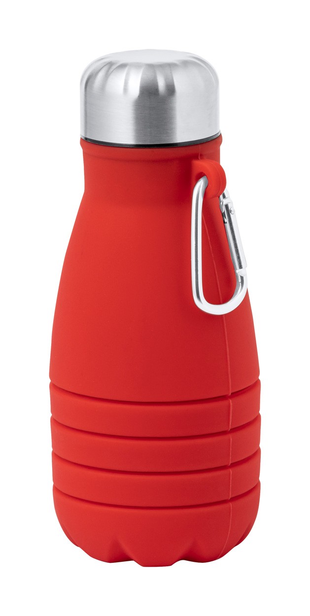 Sticlă sport, pliabilă, din silicon, cu capac și carabină din oțel inoxidabil. 550 ml.