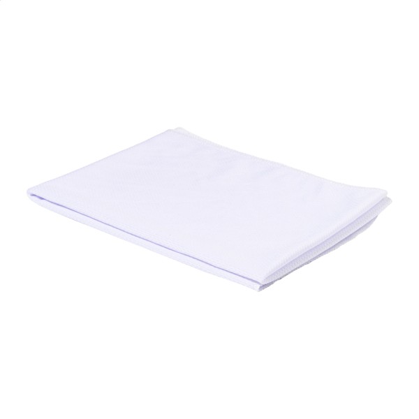 Prosop sport, din poliester RPET, în sticlă sport RPET, cu capac flip-top din PP, pai integrat și curea de transport. 800 ml. Fără BPA. Nu este potrivit pentru băuturi carbogazoase. Dimensiunea prosopului: 30×80 cm.