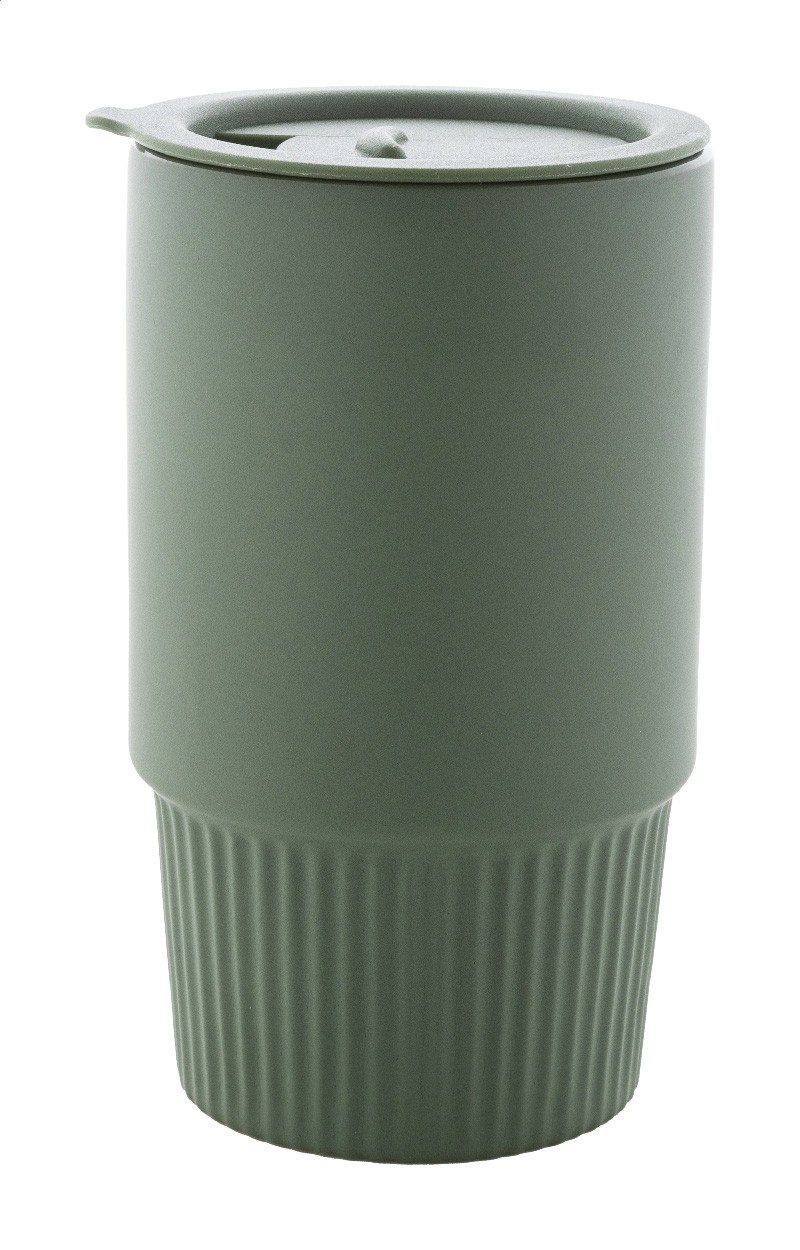 Cană de voiaj, din ceramică de înaltă calitate, cu finisaj exterior mat și capac din plastic PP. 420 ml.