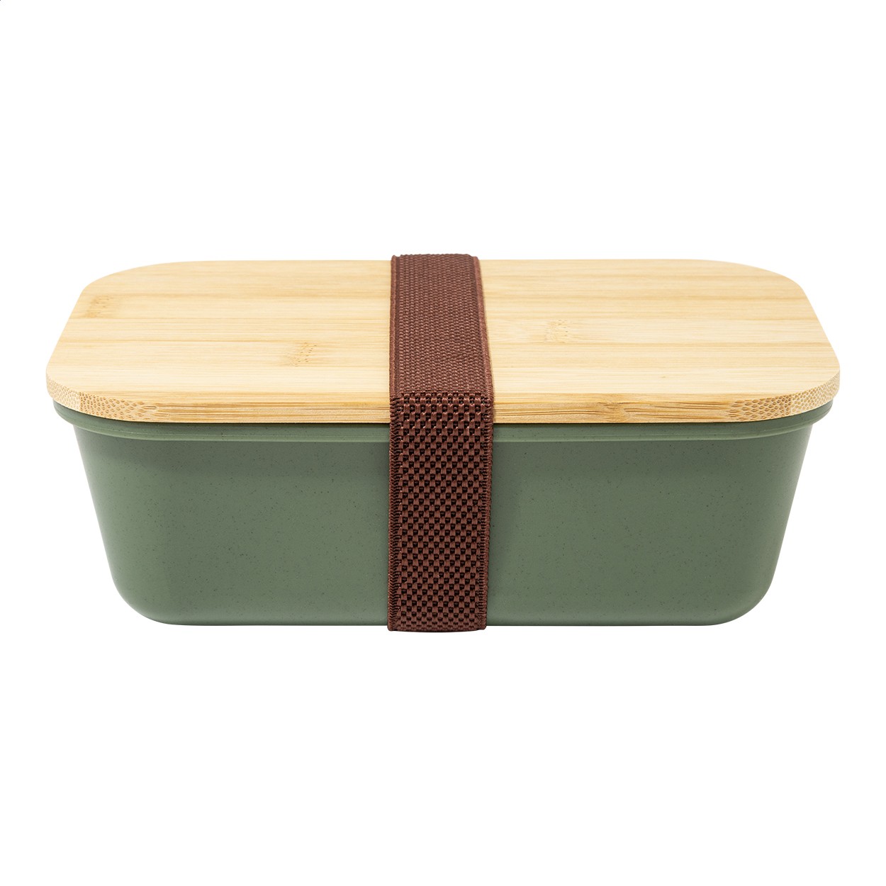 Cutie de prânz, din plastic PP, cu capac din bambus și capac elastic. 1000 ml.