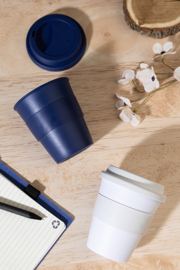 Pahar de voiaj, din plastic PP cu perete simplu, cu capac și mâner din TPE. 350 ml.