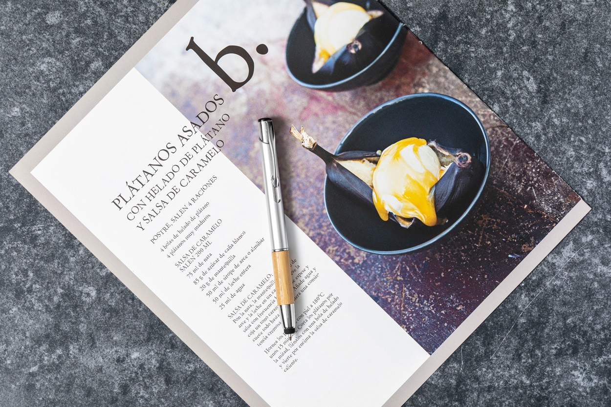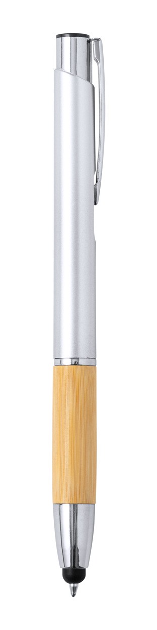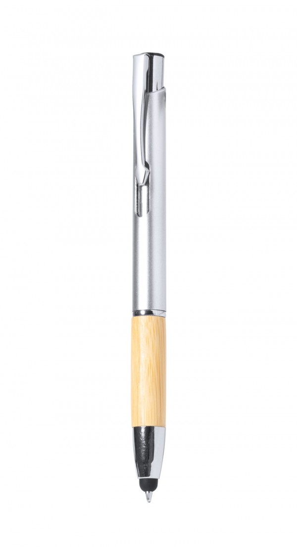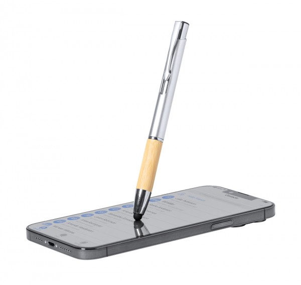 Pix cu bilă și touch, din plastic ABS, cu mâner din bambus și părți cromate. Cu mină albastră.