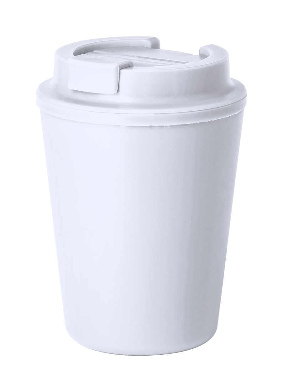 Cană termică, din plastic PP reciclat, cu perete dublu, cu capac de băut, 300 ml.