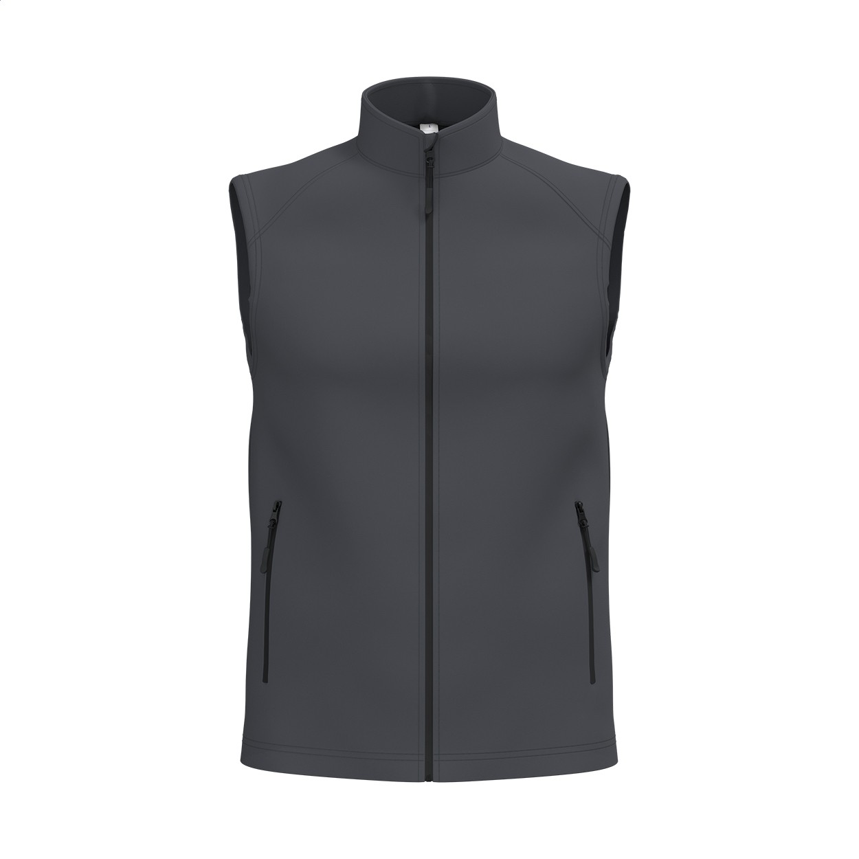 Vestă cu două straturi, din material softshell, cu fermoar și buzunare laterale cu fermoar. Cu fermoare contrastante. Material impermeabil. Exterior: 95% poliester și 5% elastan. Interior: 100% poliester micro polar fleece. Produs marca iDealBasic.