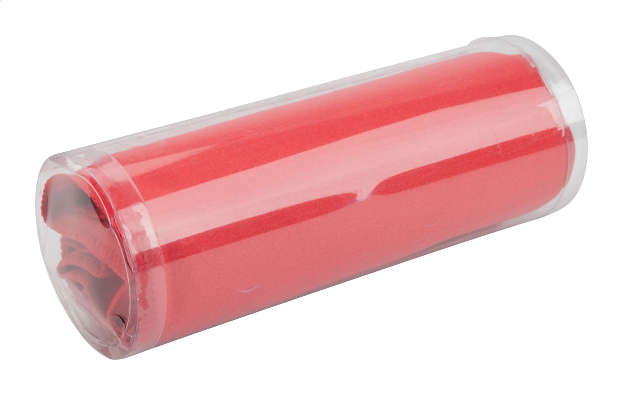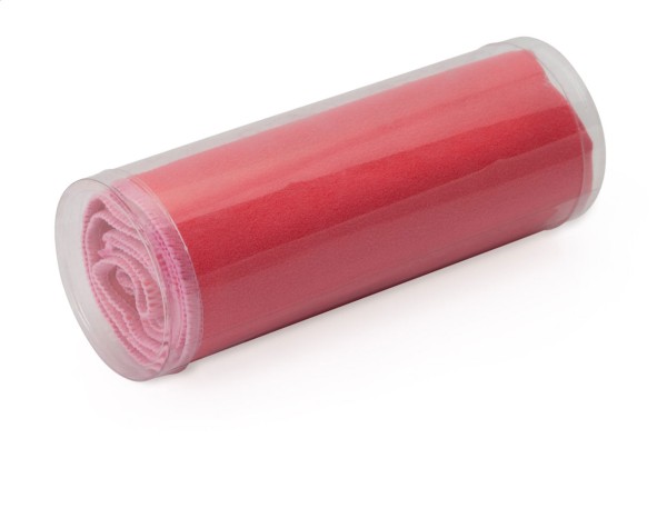 Prosop din microfibră. Livrat în cutie de plastic transparentă, 200 g/m².
