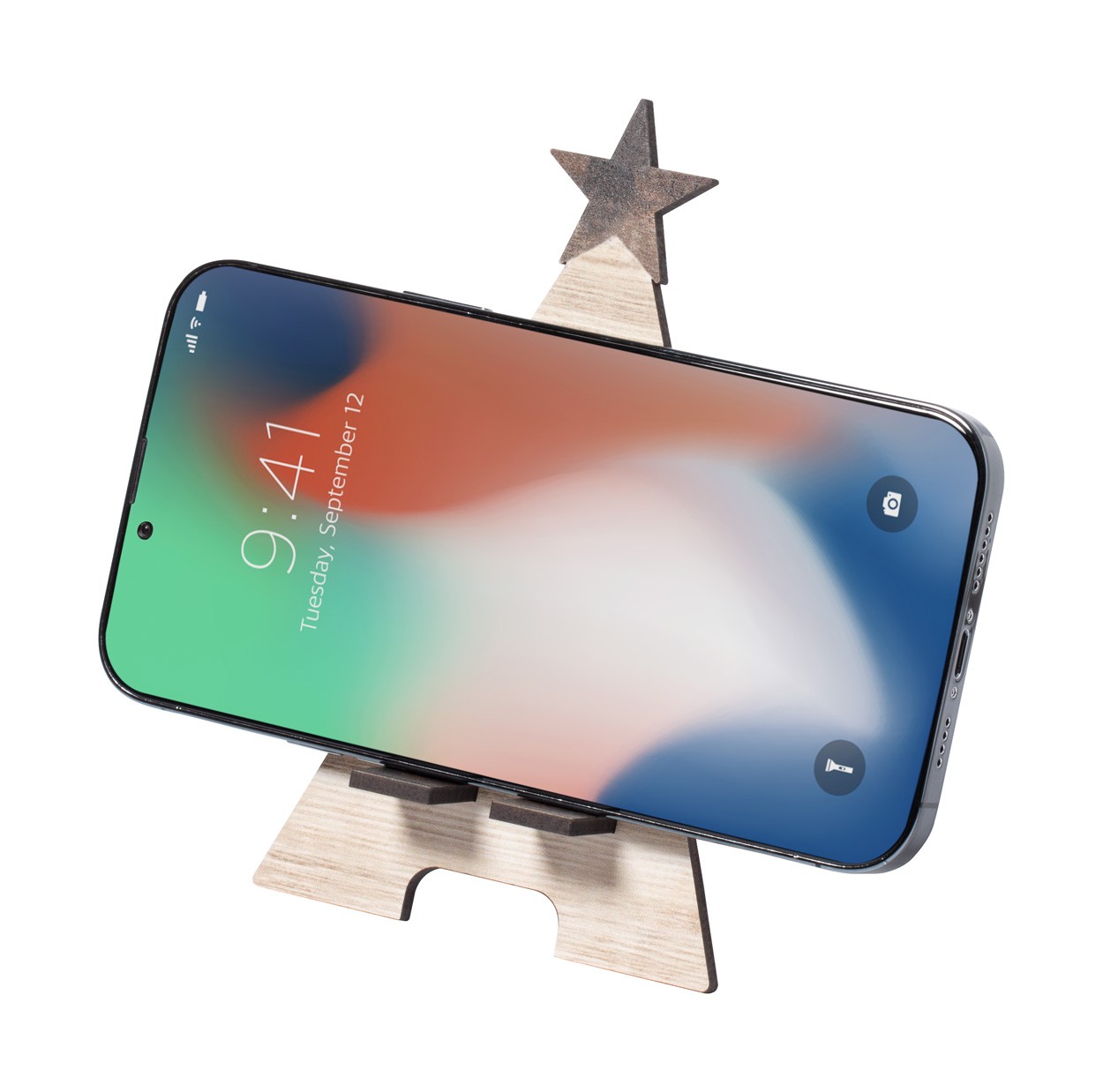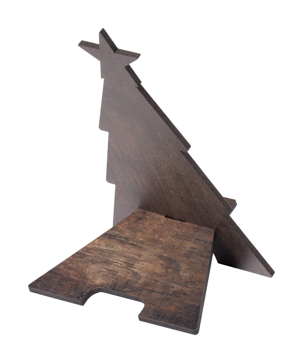 Suport pentru telefon mobil, de birou, în formă de brad de Crăciun, cu finisaj bicolor. Livrat ambalat plat.