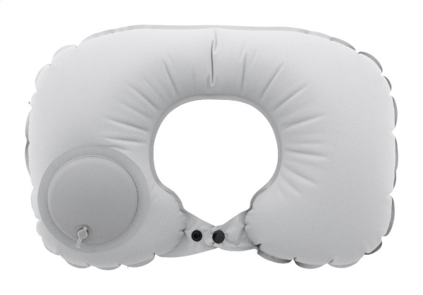 Pernă pentru călătorie, gonflabilă, din poliester RPET, cu pompă încorporată pentru umflare și dezumflare ușoară. În husă cu șnur cu fixare, din material asortat. Cu etichetă distinctivă RPET.