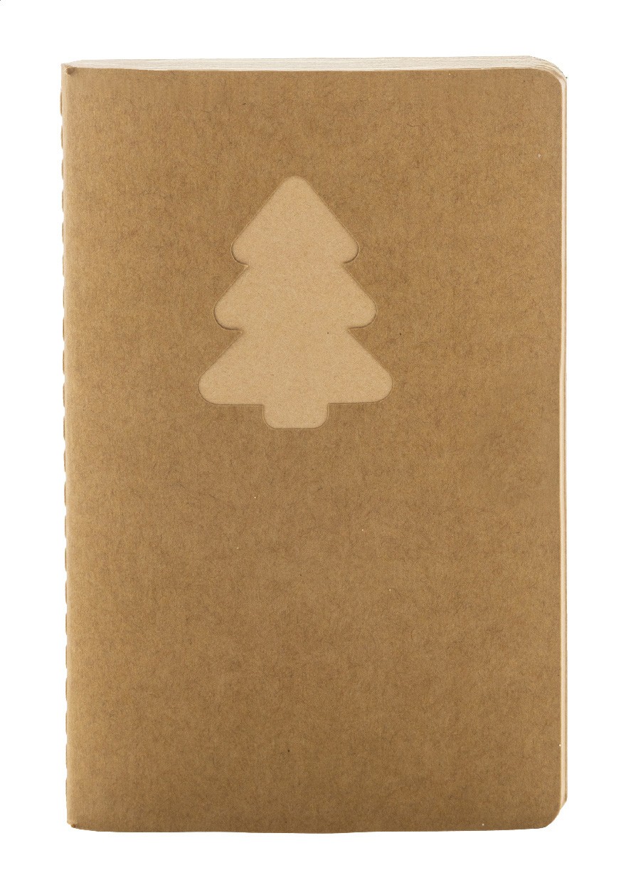 Caiet cu copertă din hârtie kraft reciclată, cu un brad de Crăciun decupat și 60 de foi veline, din hârtie kraft reciclată. Dimensiune A6.