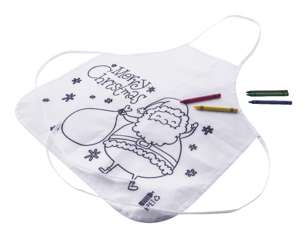 Șorț de Crăciun, pentru copii, de colorat, din material nețesut RPET, cu 5 creioane colorate.
