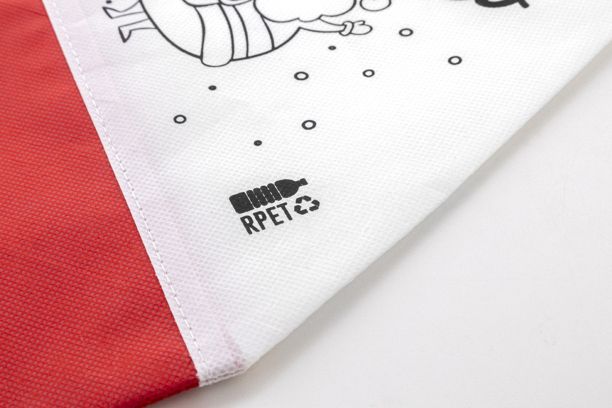 Căciulă de Crăciun, de colorat, din material nețesut RPET cu 5 creioane colorate.