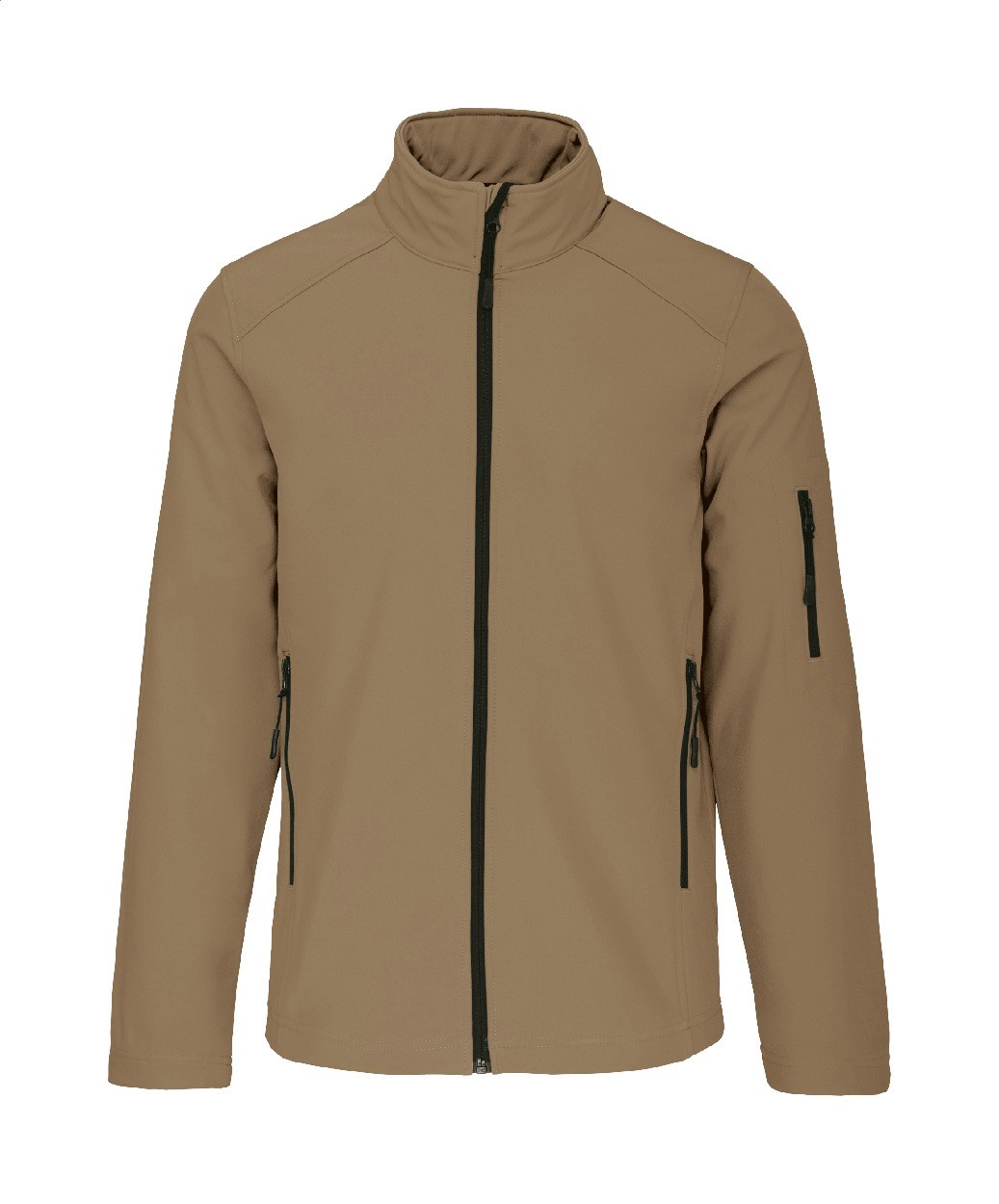 Jachetă softshell cu fermoar, triplu strat, respirabilă, rezistentă la vânt și impermeabilă, cu mâneci și buzunare laterale cu fermoar. Cu strat intermediar respirabil și strat interior din micro-polar fleece. 95% poliester și 5% elastan, 300 g/m². Produs marca Kariban.