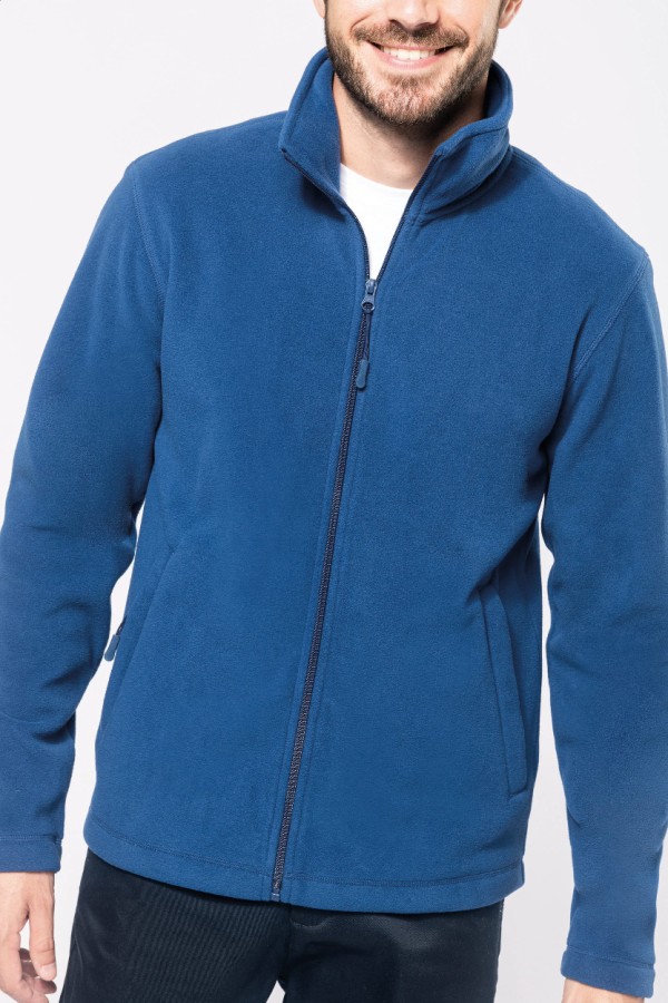 Jachetă din micro-fleece polar cu fermoar, buzunare laterale cu fermoar și finisaj anti-scărpaturi. 100% poliester, 300 g/m². Produs marca Kariban.