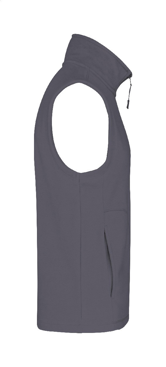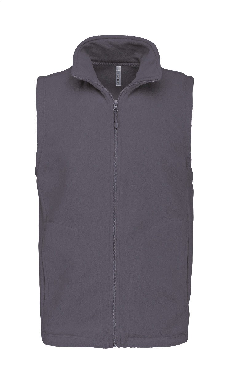 Vestă termică din micro-fleece polar cu fermoar, buzunare laterale și finisaj anti-scărpaj. 100% poliester, 300 g/m². Produs marca Kariban.