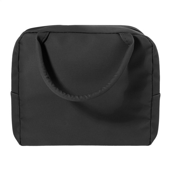 Geantă termoizolantă, din piele PU reciclată, moale, cu fermoar, buzunar frontal și căptușeală din aluminiu. Cu etichetă distinctivă din PU reciclat.