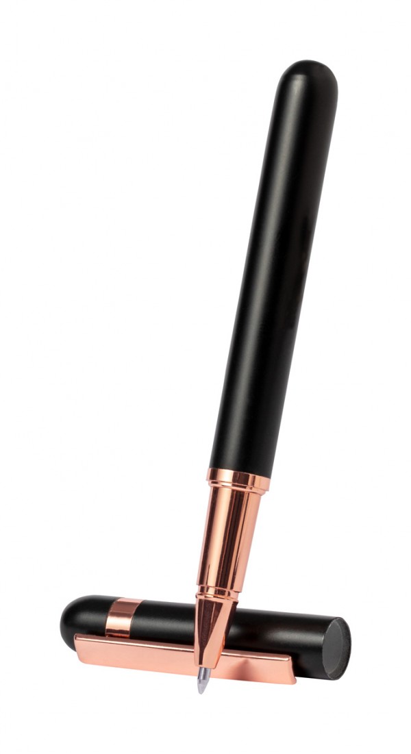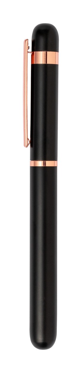 Pix roller din aluminiu, cu capac, detalii din plastic, cu finisaj cupru. Cu mină jumbo albastră.