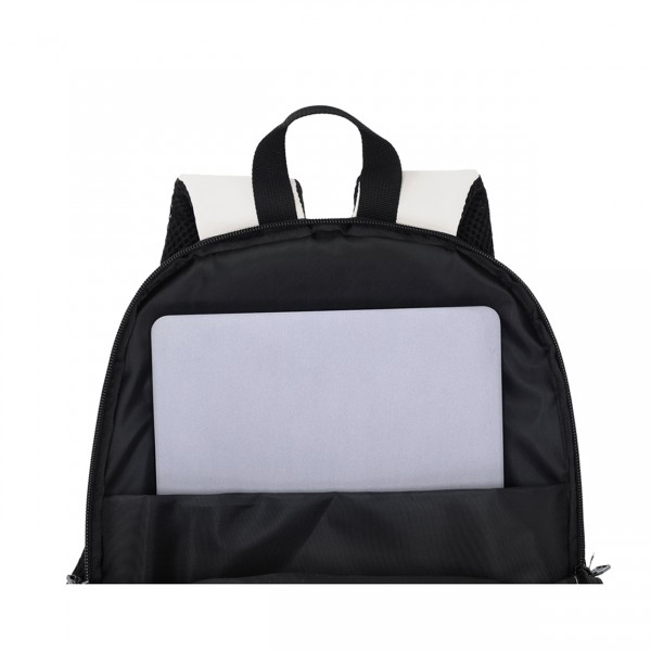 Rucsac din piele PU, soft, cu compartiment cu fermoar, compartiment căptușit pentru laptop (15"), buzunare laterale, spate și bretele căptușite.