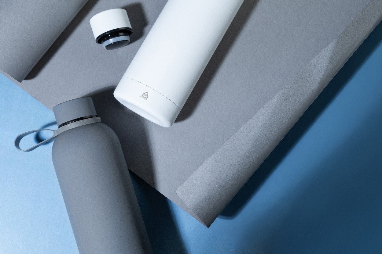 Sticlă termică, cu perete dublu, din oțel inoxidabil reciclat, cu finisaj cauciucat și mâner de transport din silicon, 500 ml.