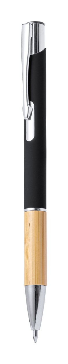 Pix din aluminiu cu mâner din bambus, finisaj cauciucat și clemă și vârf metalic. Cu mină albastră.