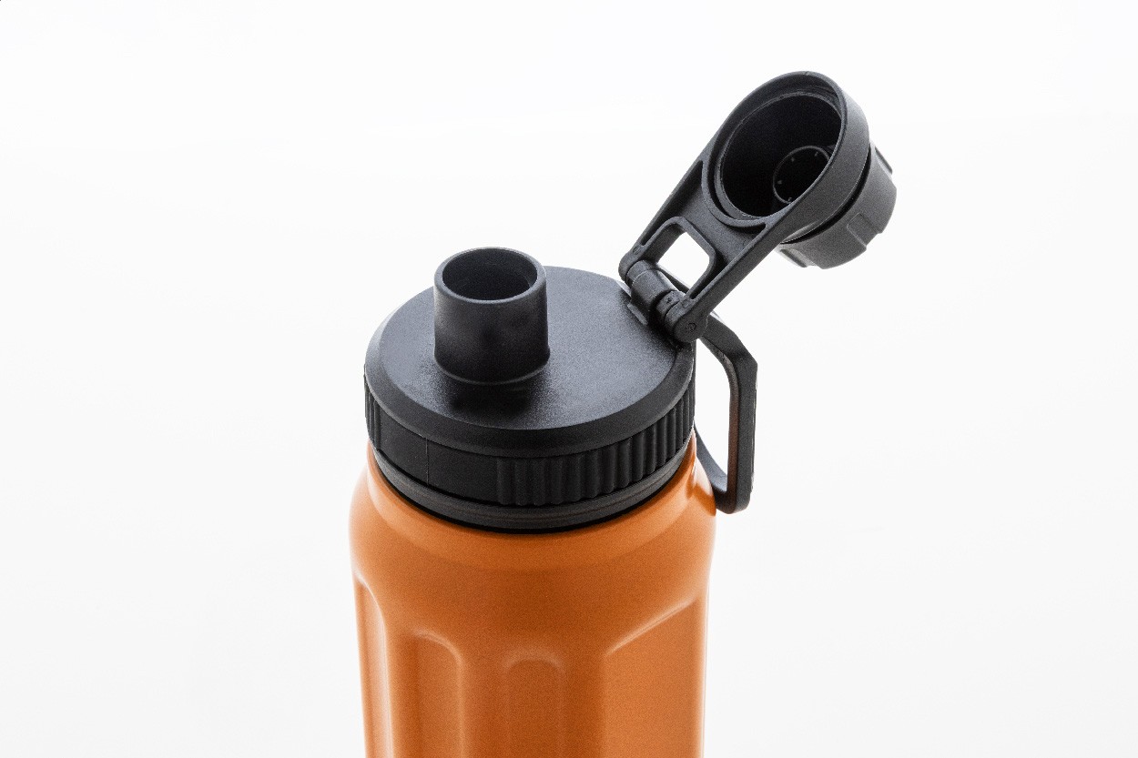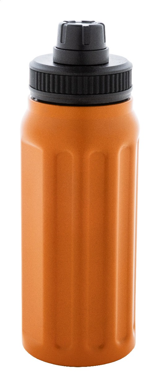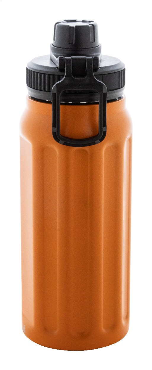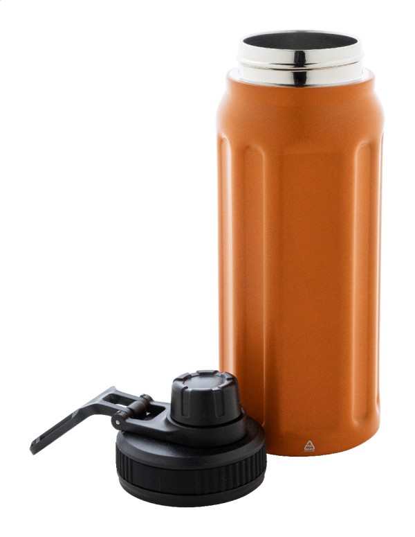 Sticlă termică cu perete dublu, din oțel inoxidabil reciclat, cu caneluri verticale. Dispune de un capac din PP cu mâner de transport integrat. 540 ml.