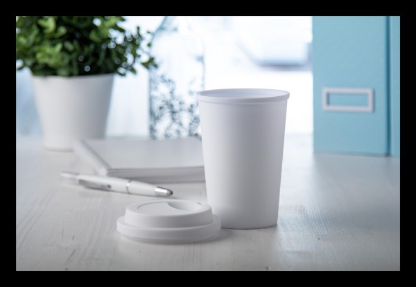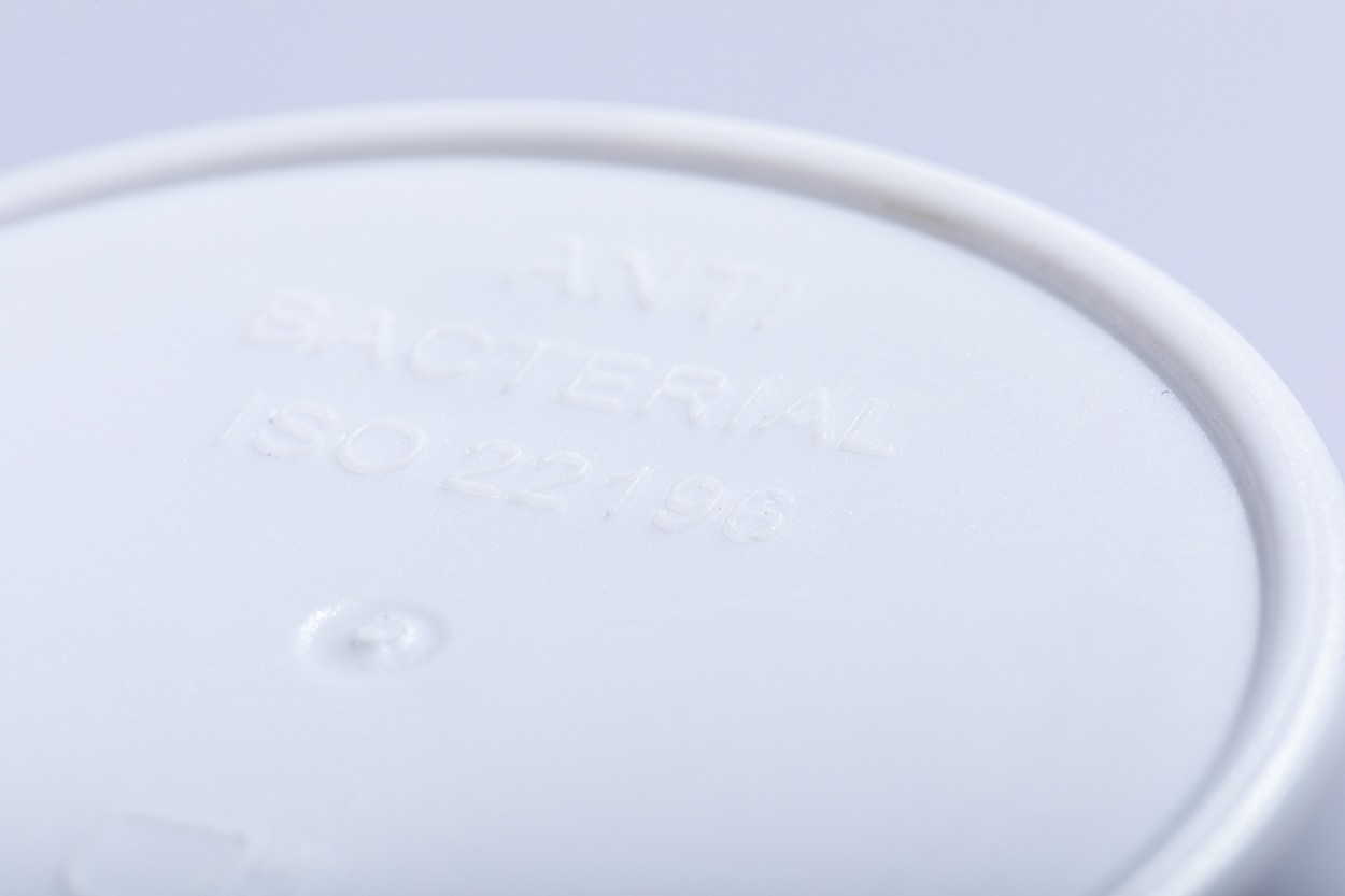 Cana termos din plastic antibacterian, cu un singur perete, capac cu orificiu pentru baut, 450 ml. Conform ISO 22196.