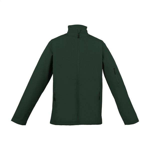 Jacheta softshell, cu trei straturi, respirabilă, rezistentă la vânt și impermeabilă, cu fermoar, cu buzunare laterale și pe mâneci. Exterior: 92% poliester și 8% elastan cu membrană respirabilă. Interior: 100% poliester micro polar fleece. Produs marca Legend Classics.