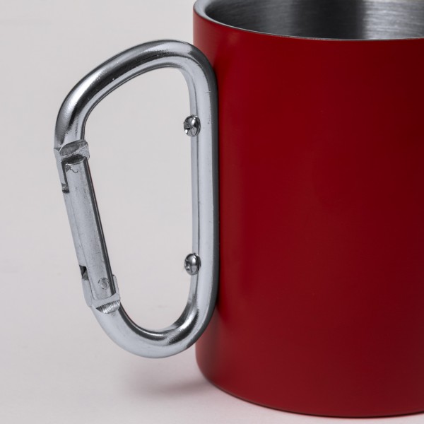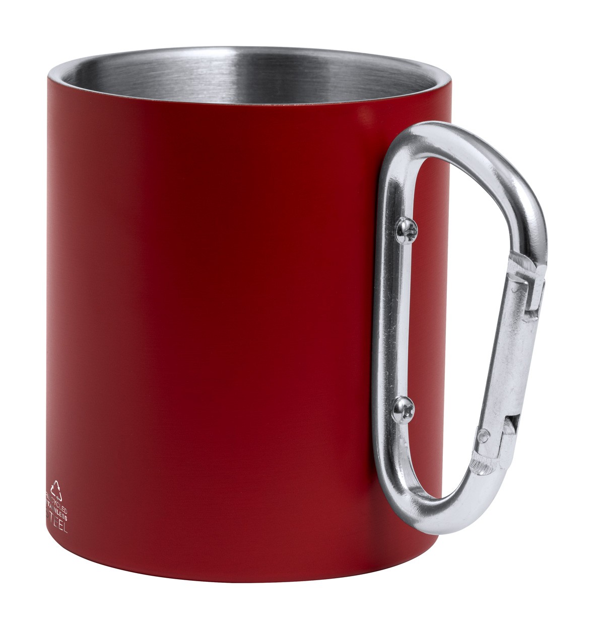 Cană termică din oțel inoxidabil reciclat, cu perete dublu, cu mâner carabină din aluminiu reciclat. 300 ml. În cutie de hârtie kraft.