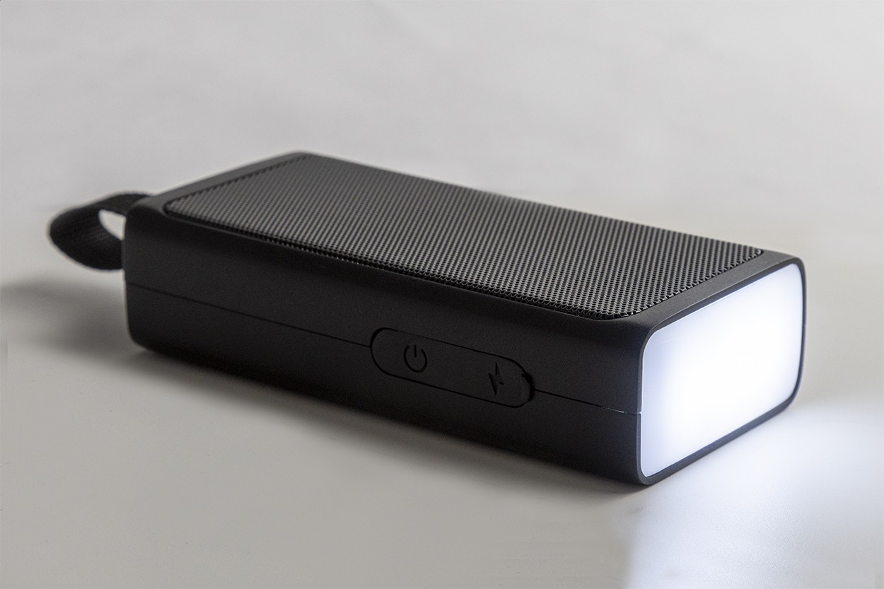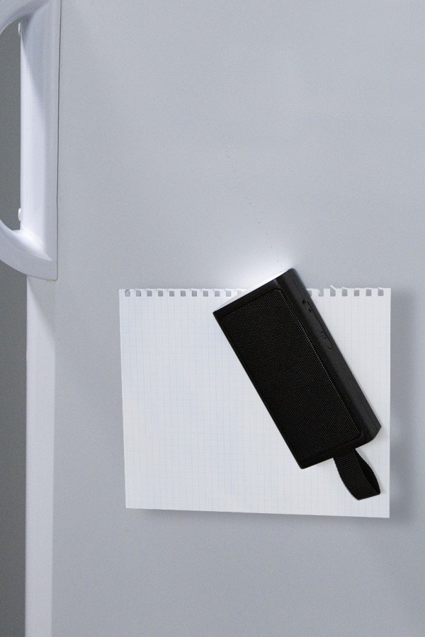 Difuzor wireless, din ABS reciclat, cu grilă metalică, lanternă LED și funcție magnetică. Cu baterie reîncărcabilă încorporată (500 mAh). Include cablu de încărcare USB.