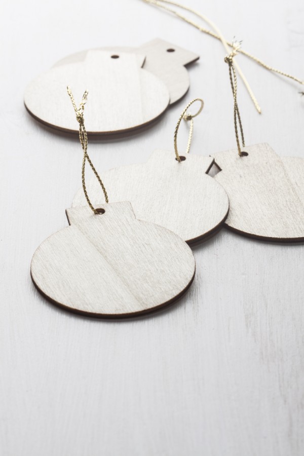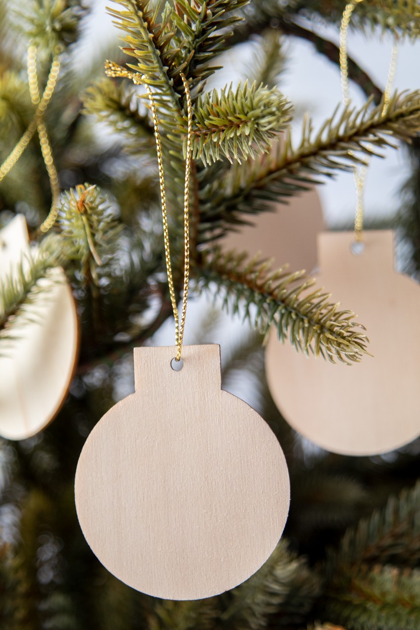 5 buc de ornamente din lemn pentru pomul de Crăciun, cu șnur auriu.