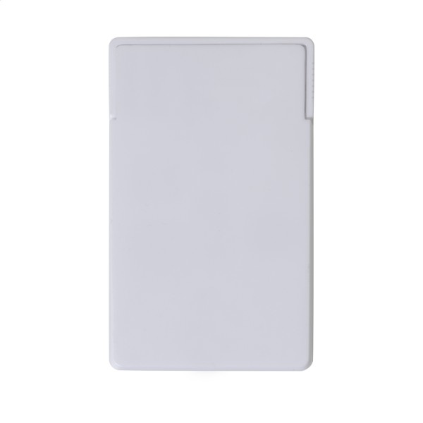 Trusă compactă de cusut de călătorie în carcasă PS reciclată în formă de card. Include 6 fire colorate din poliester, foarfece, 2 ace de siguranță, 2 ace, 2 nasturi și un înfiletător de ace.